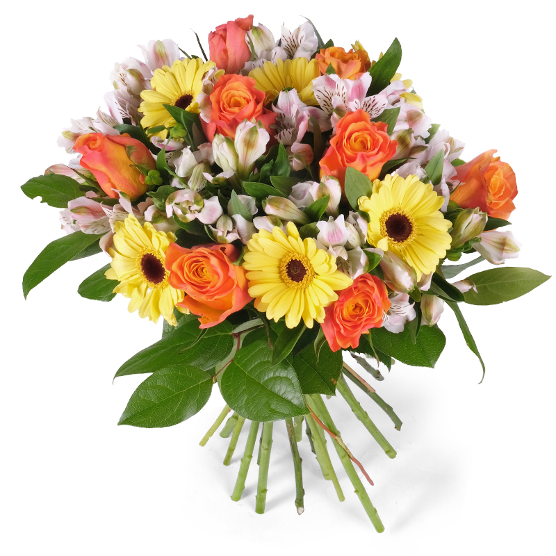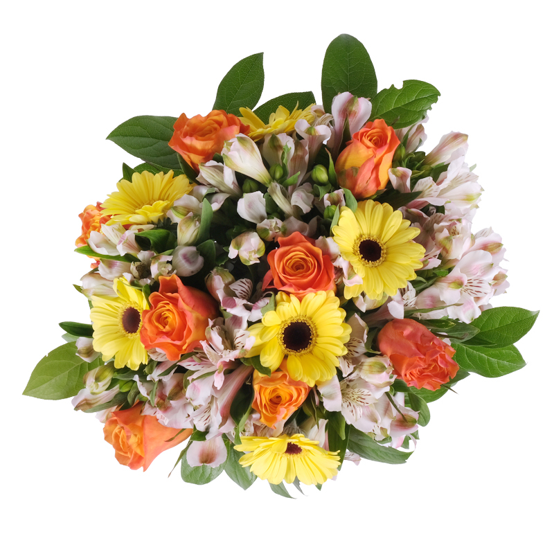 Bukiet łączący delikatność róż, optymizm gerber i finezję alstromerii to prawdziwa uczta dla oczu. Naturalna oprawa z liści podkreśla świeżość i wysoką jakość kwiatów. To prezent, który wyraża szczere uczucia i zostaje zapamiętany na długo. Wyślij anonimowo lub z liścikiem!